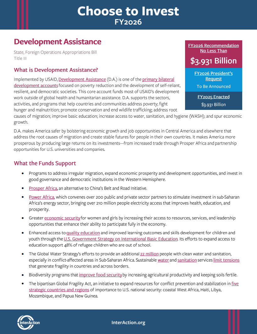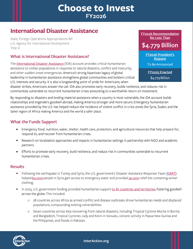 For additional information and recommendations, please see InterAction’s “What’s Next for Foreign Aid.”